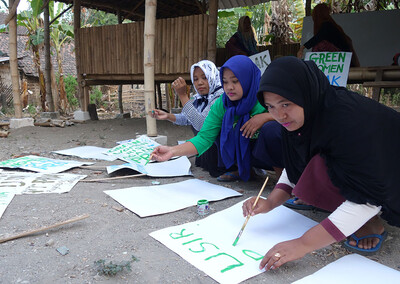 (Vrouwen in Lakardowo schilderen protestborden (admin), 05/10/2018)