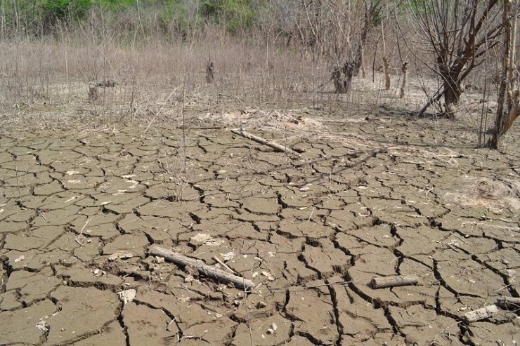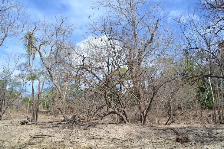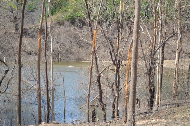 The dead trees clearly show until where the water rised. Although the water level has dropped somewhat, the damage is huge. According to the plan of the dam, the water can reach even higher.
