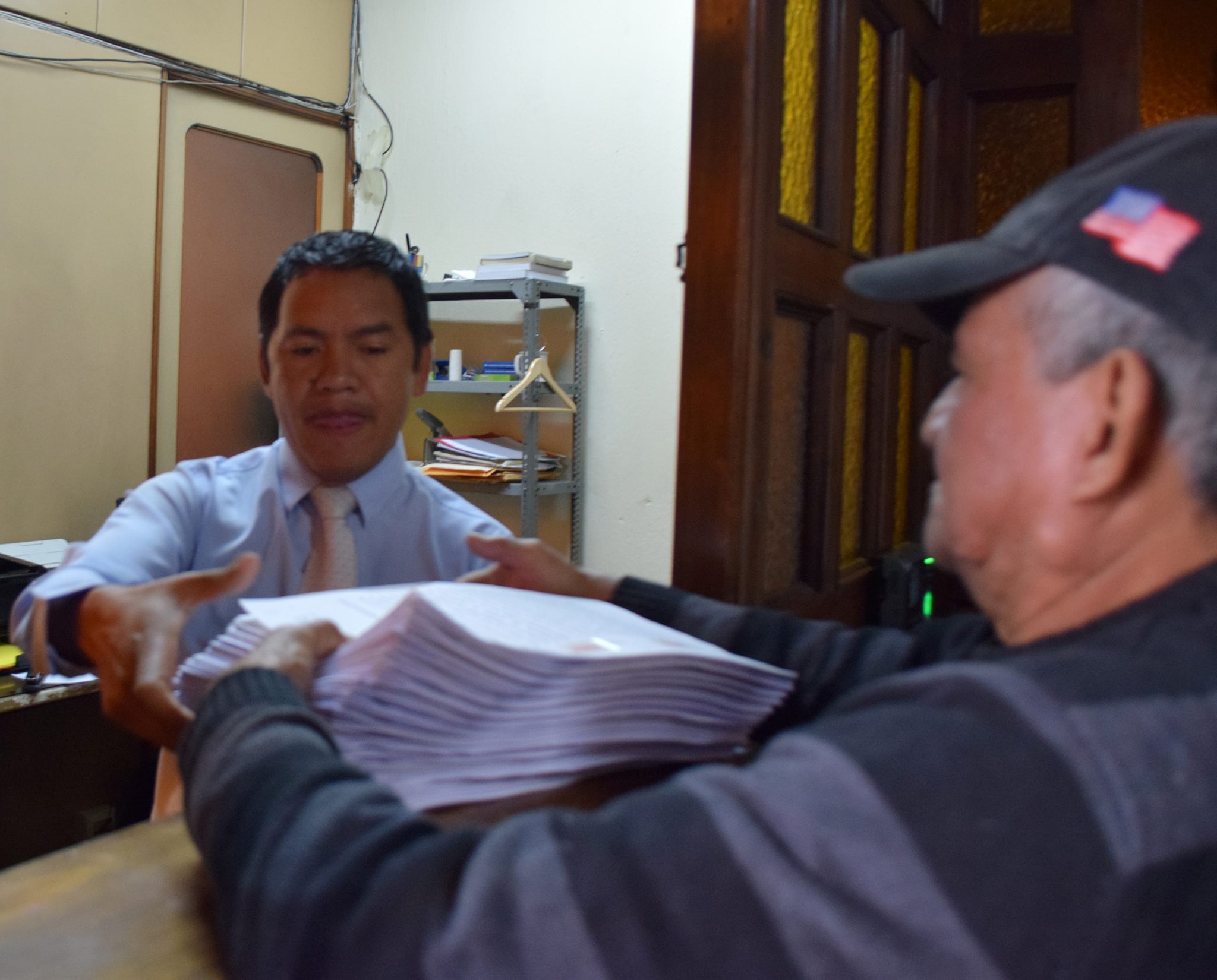 Utz Che' filing the lawsuit. Photo: Utz Che'