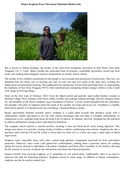 The Lamaholot tribal community of East Flores and Lembata Regency, inhabiting islands such as Adonara, Solor, and Lembata, has a rich cultural heritage shaped by unique agricultural, fishing, and food traditions. However, these traditions are under threat from modernization, social shifts and climate change, leading to a loss of local food knowledge and cultural practices.