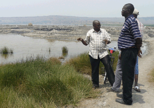 Lake Katwe, a little south of Lake Albert, is threatened by salt mining: in a couple of years time the surface of the lake has decreased from 7 to 3,5 km. The surrounding communities are dependant on salt mining but they haven't been using the lake sustainably which has caused the banks to erode and be surrounded by cattle keepers and salt layers. It's not NAPE's purpose to deprive the local people of their income but to teach them better ways of using the area.