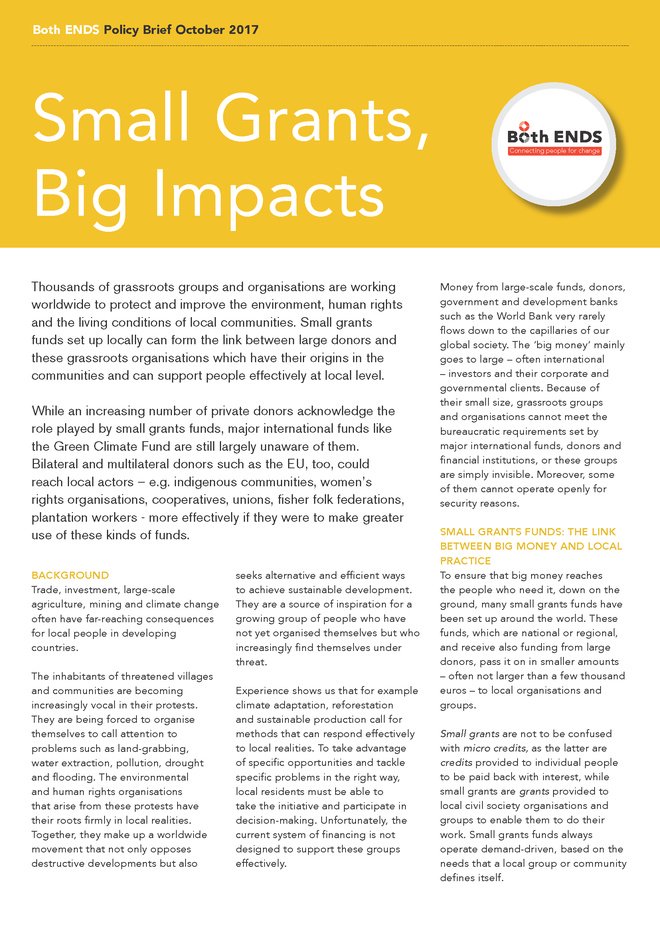Small grants funds offer an effective, alternative way to channel big money from large donors and funds to local groups and organisations that are striving for a sustainable and just society everywhere around the world.