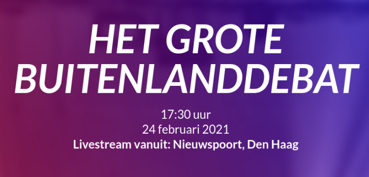 Op woensdag 24 februari organiseert de Fair, Green and Global Alliance (FGG)* samen met vele partners** het Grote Buitenlanddebat vanuit Nieuwspoort in Den Haag. Kandidaat-Kamerleden van verschillende partijen gaan met elkaar in gesprek over hun visie op de huidige en de mogelijk toekomstige rol van Nederland in het buitenland. Dit doen ze aan de hand van een de thema's klimaat, landbouw & natuur, mondiale gezondheid, en handel & internationale samenwerking.