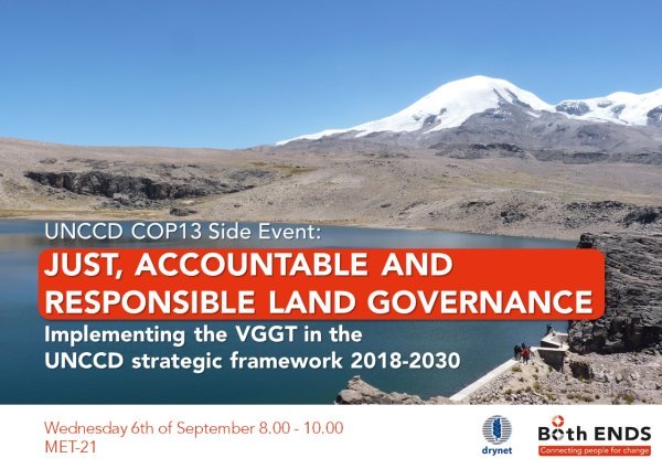 In this side event we aim to show inspiring practices of just, accountable and responsible land governance and translate them into policy messages to be integrated in the UNCCD strategic framework.