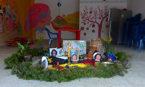 Herdenkingsplek voor Berta Cáceres in het kantoor van COPINH