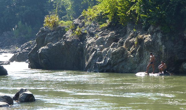 Ik breng de middag en nacht door in Rio Blanco. Met een aantal jongens daal ik af naar de rivier, tijdens de wandeling zijn de jongens verlegen en stil. We zoeken verkoeling in de magische rivier en klauteren op een rots die er middenin ligt. Dan beginnen ze te vertellen, over hoe graag ze in de rivier zwemmen, over de goede maisoogst, over Berta, over alle internationale bezoekers die ze ontvangen hebben. Er wordt gelachen en we springen van de hogere rotsen. Als we ons weer hebben aangekleed en naar boven lopen, keert de stilte terug.
