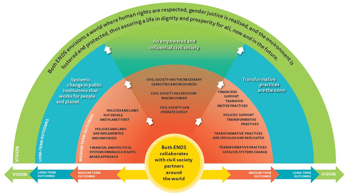Both ENDS heeft een nieuwe 5-jaar strategie. Met de nieuwe strategie werken we via drie strategische routes toe naar het bereiken van onze visie en missie: 1) Een krachtig en invloedrijk maatschappelijk middenveld; 2) Systeemverandering in publieke instellingen die mens en milieu vooropstellen; en 3) Transformatieve praktijken zijn de norm.