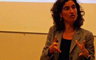 "Mijn idee van 'goed' is dat mensen kunnen beslissen over hun eigen ontwikkeling; dat ze kunnen beslissen over wat er met hun omgeving gebeurt. Dat wij allemaal respect hebben voor de grenzen van onze ecosystemen en dat vrouwen, net als mannen, zich kunnen ontplooien op de manier die zij willen". Danielle Hirsch reageert op een vraag uit het publiek, waar zij zojuist een lezing gegeven heeft over haar toekomstvisie op een duurzame economie.