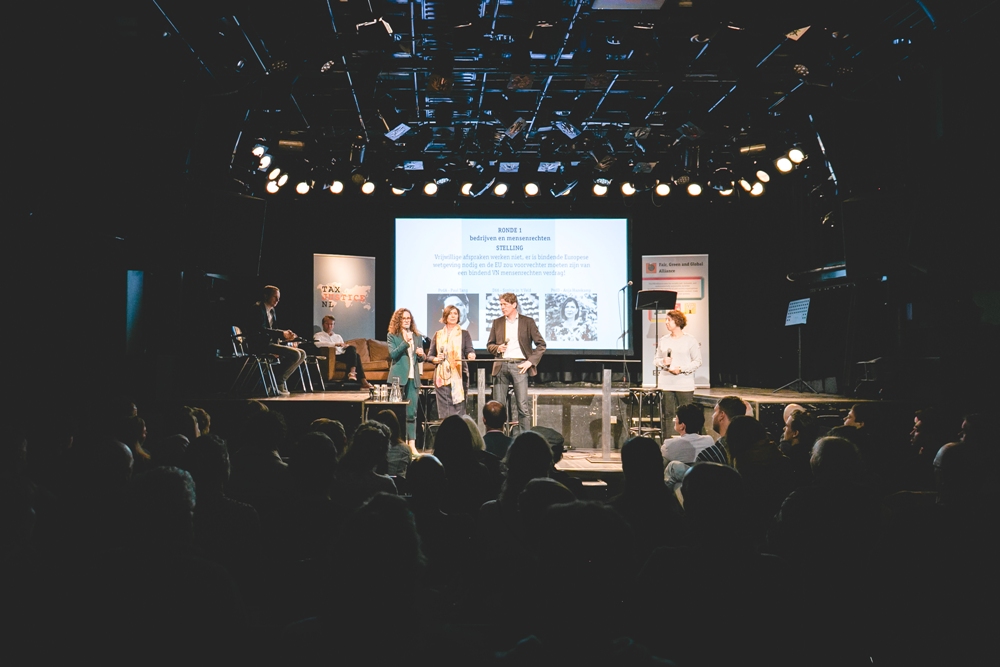 Het debat werd georganiseerd door de Fair, Green & Global Alliantie (ActionAid, Both ENDS, Schone Kleren Campagne, Milieudefensie, SOMO en TNI) in samenwerking met Handel Anders en Tax Justice, en geleid door moderator Dionne Abdoelhafiezkhan. Kandidaten Anja Hazekamp (PvdD), Arnout Hoekstra (SP), Bas Eickhout (GroenLinks), Paul Tang (PvdA), Reinier van Lanschot (Volt) en Sophie in 't Veld (D66) gingen met elkaar de discussie aan over de onderwerpen bedrijven & mensenrechten, klimaatbeleid, belastingontwijking en handel & voedsel.