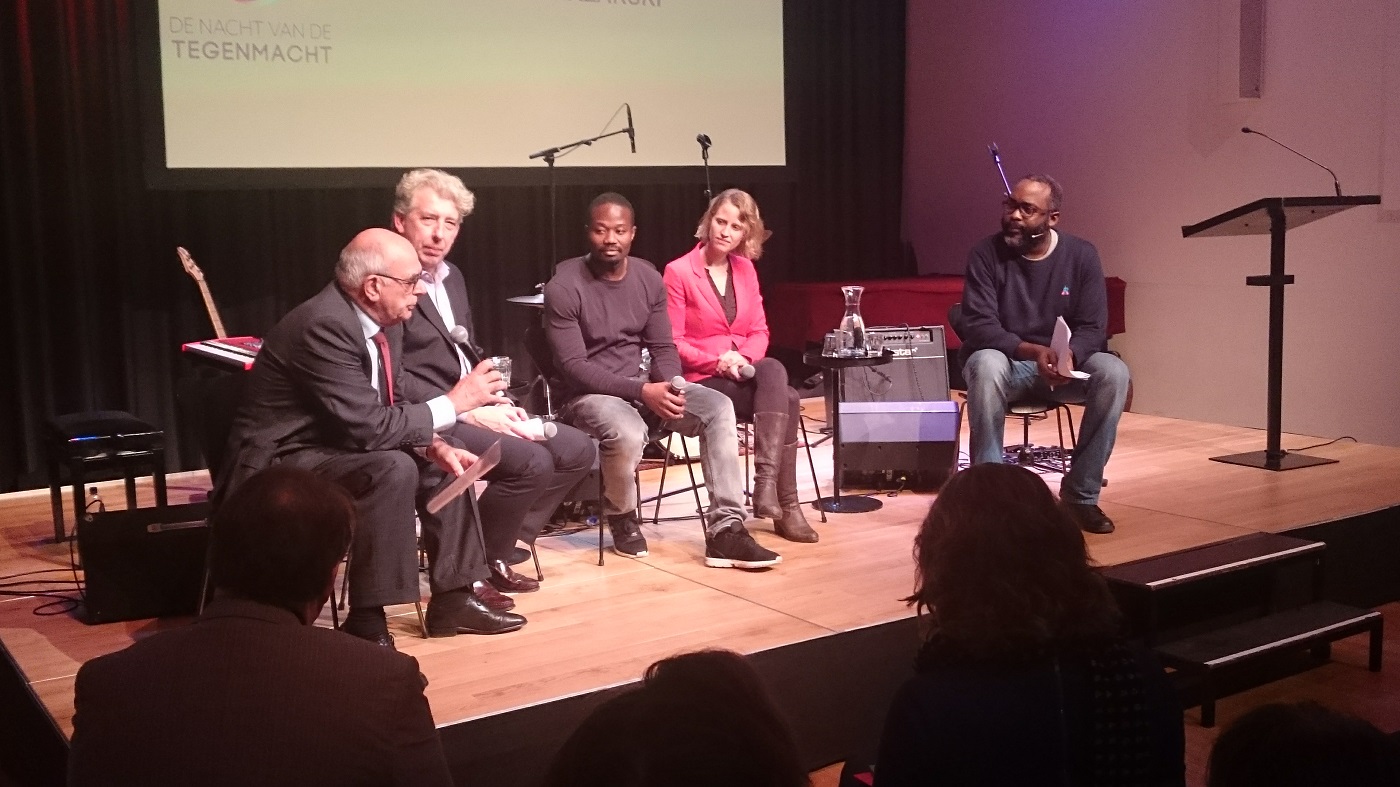 De vraag die gedurende de hele avond centraal staat is onze eigen houding met betrekking tot burgermoed en activisme. Wat zouden wij vanuit Nederland moeten doen om de tegenmacht in andere landen te versterken? En wat kunnen wij zelf in Nederland doen? Voor de meeste sprekers is dat klaar als een klontje: Jan Pronk, oud-minister van ontwikkelingssamenwerking vindt bijvoorbeeld dat we als Nederland niet hypocriet moeten zijn. Neem Indonesië, waar op het moment van De Nacht van de Tegenmacht een Nederlandse handelsmissie bezig is. "Deze handelsmissie heeft alleen oog voor onze commerciële belangen in plaats van mensenrechten", zegt Pronk.