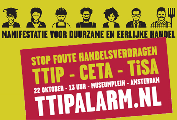 Zaterdag 22 oktober vindt in Amsterdam een grote demonstratie tegen handelsverdragen TTIP, CETA en TiSA plaats. Both ENDS doet ook mee, omdat wij deze verdragen een heel slecht idee vinden. Niet alleen voor ons in Nederland en Europa, maar juist ook voor ontwikkelingslanden.