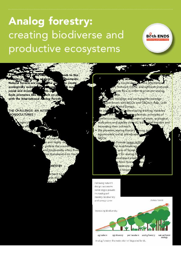 Analog forestry is een vernieuwende aanpak voor het ecologisch herstel van gedegradeerd land. Natuurlijke bossen worden gebruikt als voorbeeld voor ecologisch duurzame landschappen, die bijdragen aan de maatschappelijke en economische behoeftes van lokale gemeenschappen.