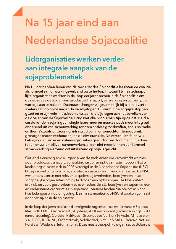 Na 15 jaar hebben leden van de Nederlandse Sojacoalitie besloten de coalitie