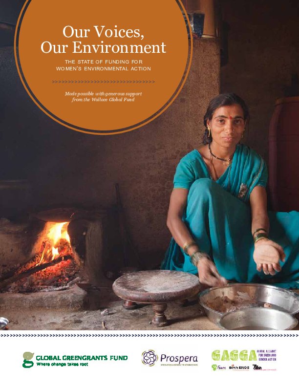 Our Voices, Our Environment: The State of Funding for Women’s Environmental Action represents the first-ever benchmarking ofphilanthropic funding in support of women and the environment. Produced by Global Greengrants Fund and Prospera International Network of Women’s Funds, in partnership with the Wallace Global Fund and the Global Alliance for Green and Gender Action (GAGGA).